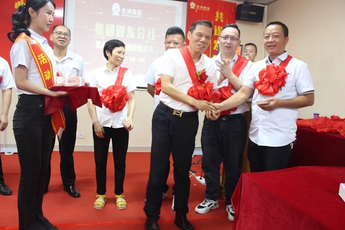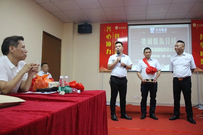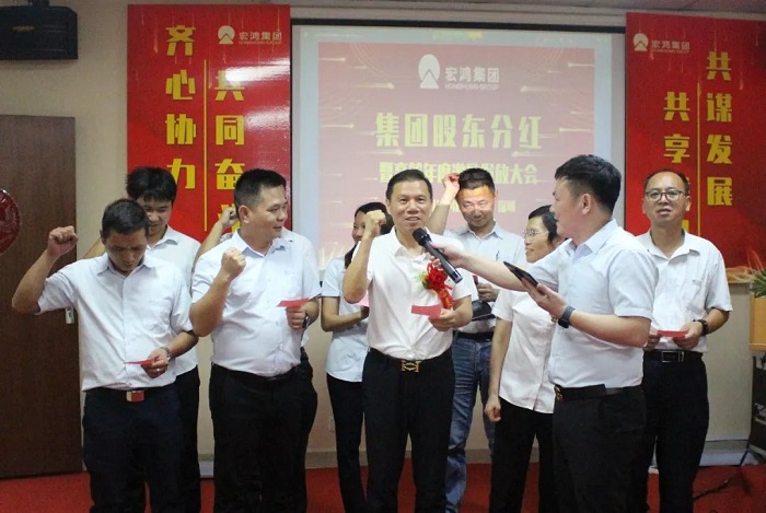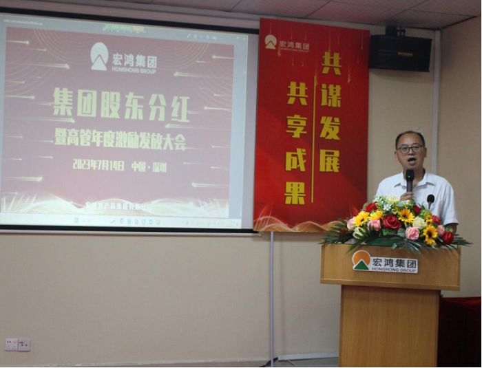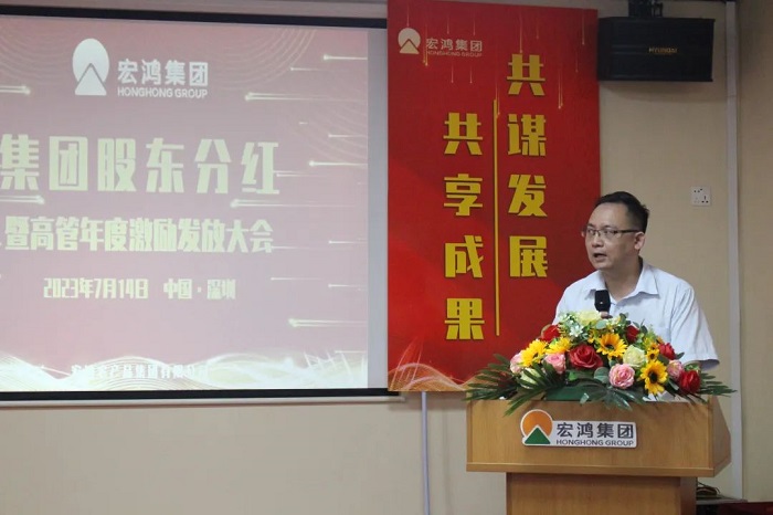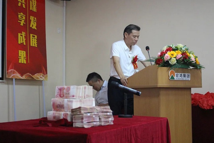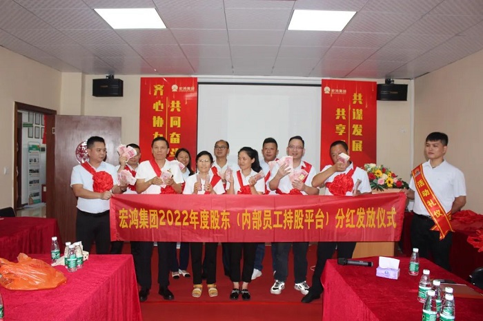 今天集团在这里举行分红和奖金发放仪式,既是对大家付出的肯定,更是集团落实分享文化的事实体现。2023年集团将不断夯实现有基础,品牌、业绩、效益将会大幅提升,同时分享力度也会更大,希望全体同仁一起努力奋斗,共同成就一番事业!
