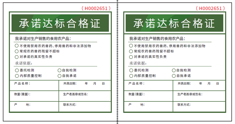 包装销售的食用农产品,应以销售包装为单元开具承诺达标合格证,以适当方式固定在包装表面。散装销售的农产品,应以实际交易批次为单元开具承诺达标合格证,实行一批一证,随附农产品流通。